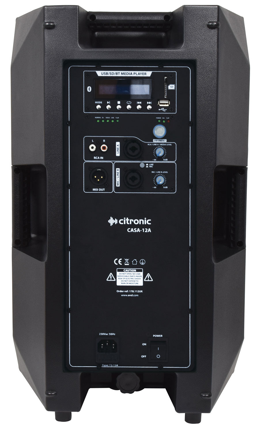 Versatile full-range active moulded PA cabinets with built-in high efficiency class D amplifier. A DSP controller offers 5 switchable output profiles which are suited to different program material. Inputs are provided on XLR/jack with mic/line level switching and RCA line connectors. A built-in audio module provides playback from USB or SD media and Bluetooth wireless pairing. These cabinets are fully featured for virtually any PA application and pair perfectly with the CASA series sub cabinets for high energy sound reinforcement.